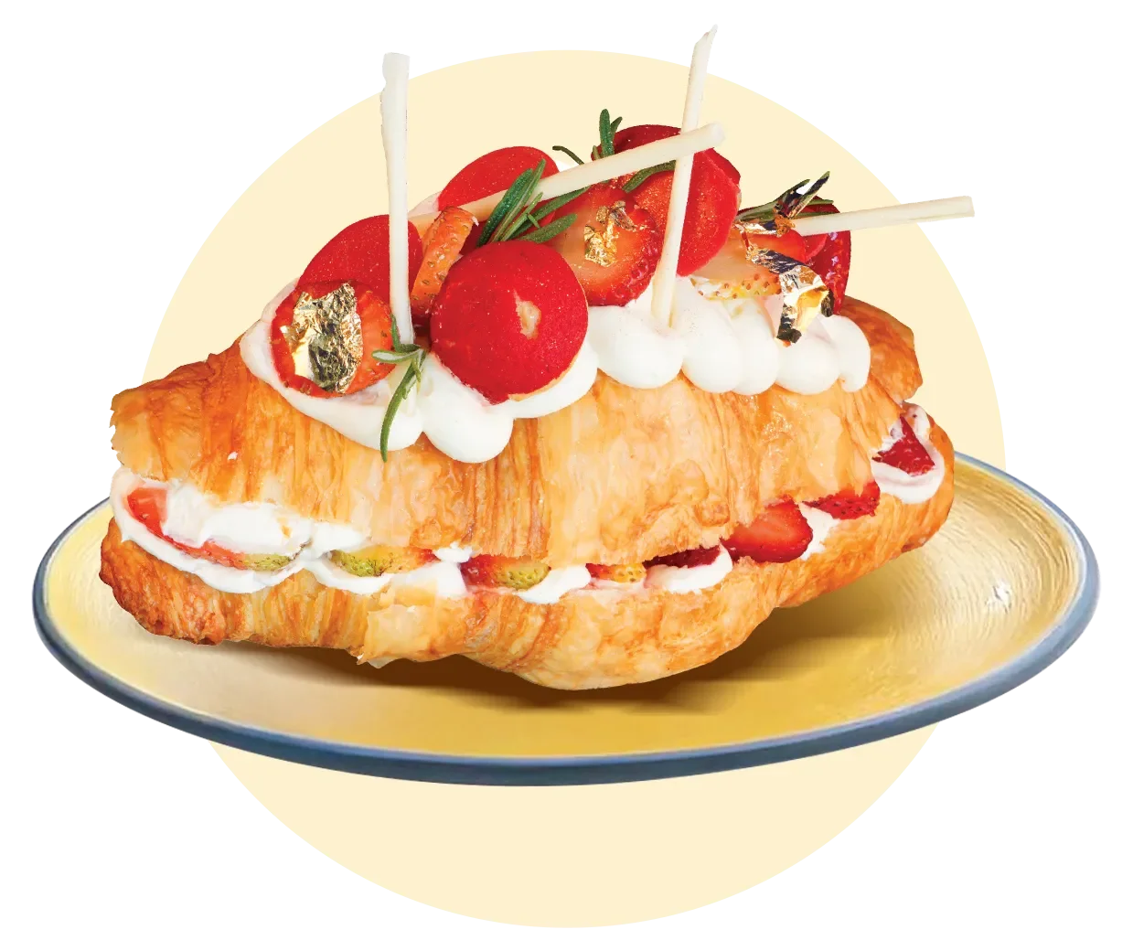 ครัวซองค์สตรอว์เบอร์รีที่อบกรอบนอกนุ่มใน ด้านในเต็มไปด้วยไส้สตรอว์เบอร์รีครีมหวาน อมเปรี้ยว ทุกคำคือความสดชื่น